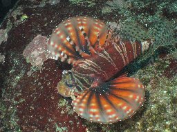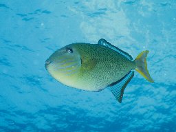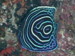![]() タテジマキンチャクダイの幼魚<by菱田> |