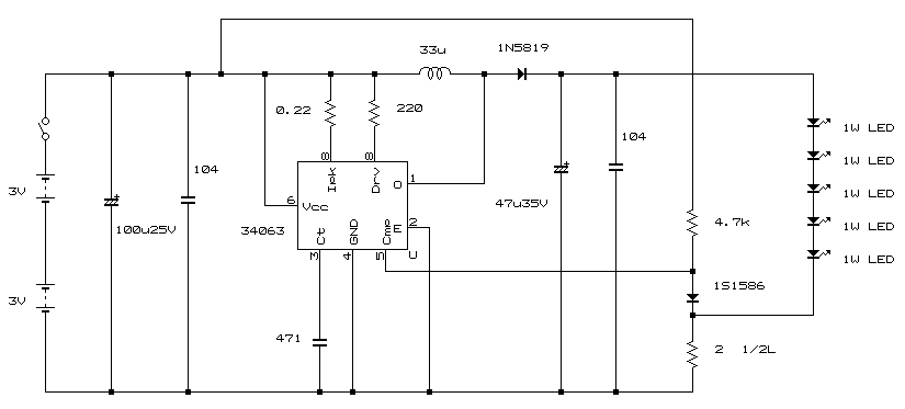 そこで、34063という有名なスイッチング電源ICを使い昇圧した