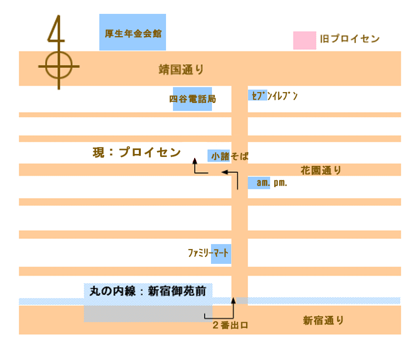 都営新宿丸の内線 新宿御苑前 下車 大木戸門方面出口(2番出口)を出て左に入り、靖国通り方面に進む。 4本目の道(花園通り)を左折そば屋の隣のビル:ダイアパレス。 B1への階段を下りて左に曲がって突き当たりのお店です。
